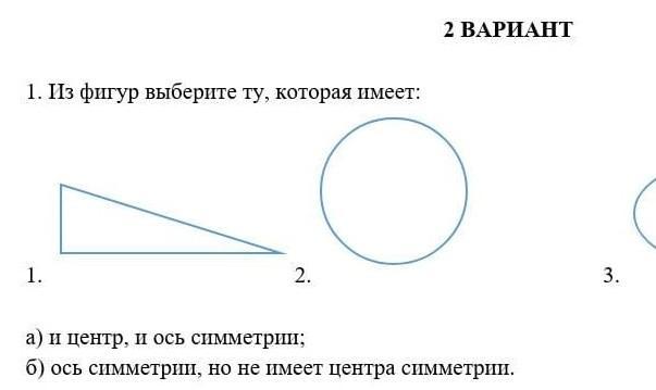 а) круг имеет ось симметрии и центр. Круг под номером 2