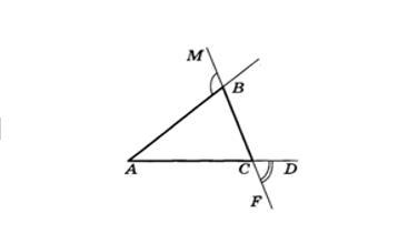 На рис. ∠ABM =117°, ∠FCD = 49°. Найдите внешний угол при вершине А. (с полным решением пожалуйста, можно без дано)