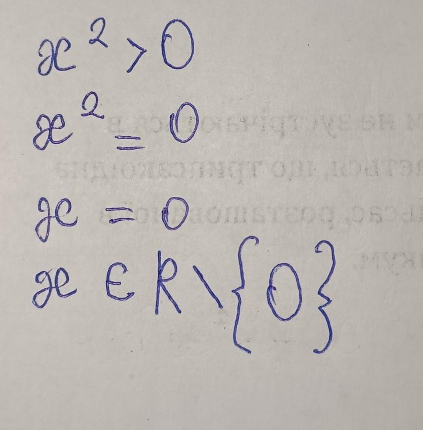 Решением неравенства являются все действительные числа, кроме 0. Ведь 0 не > 0. А степень четная, любое число будет положительным. А любое положительное число >0.