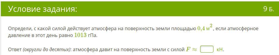 F=p*S= 101300Па*0,4 м²=40520 Н