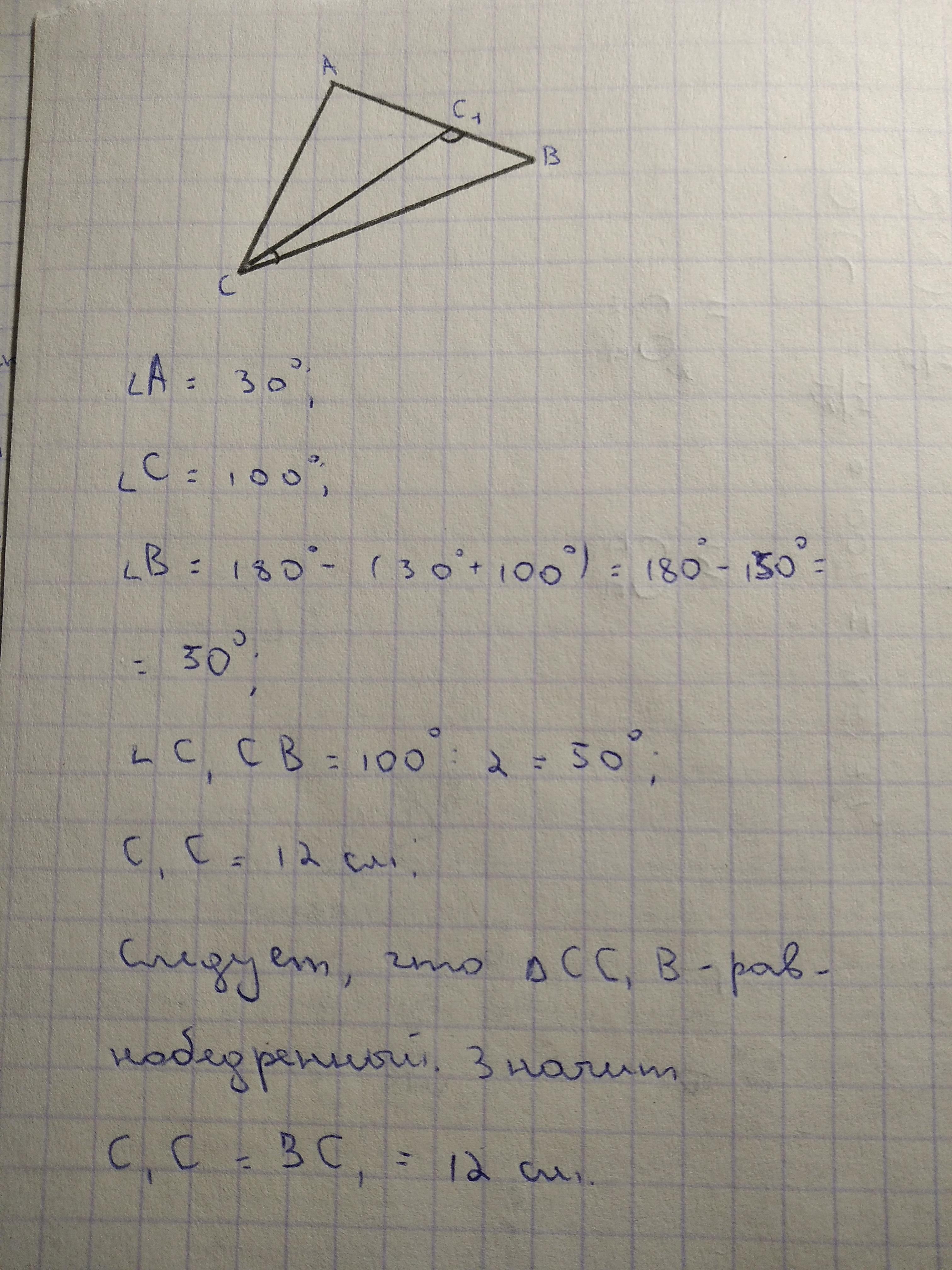 Я неверно нарисовала. Надеюсь понятно. Забыла добавить, что это следует по признаку равнобедренного треугольника (углы при основании равны