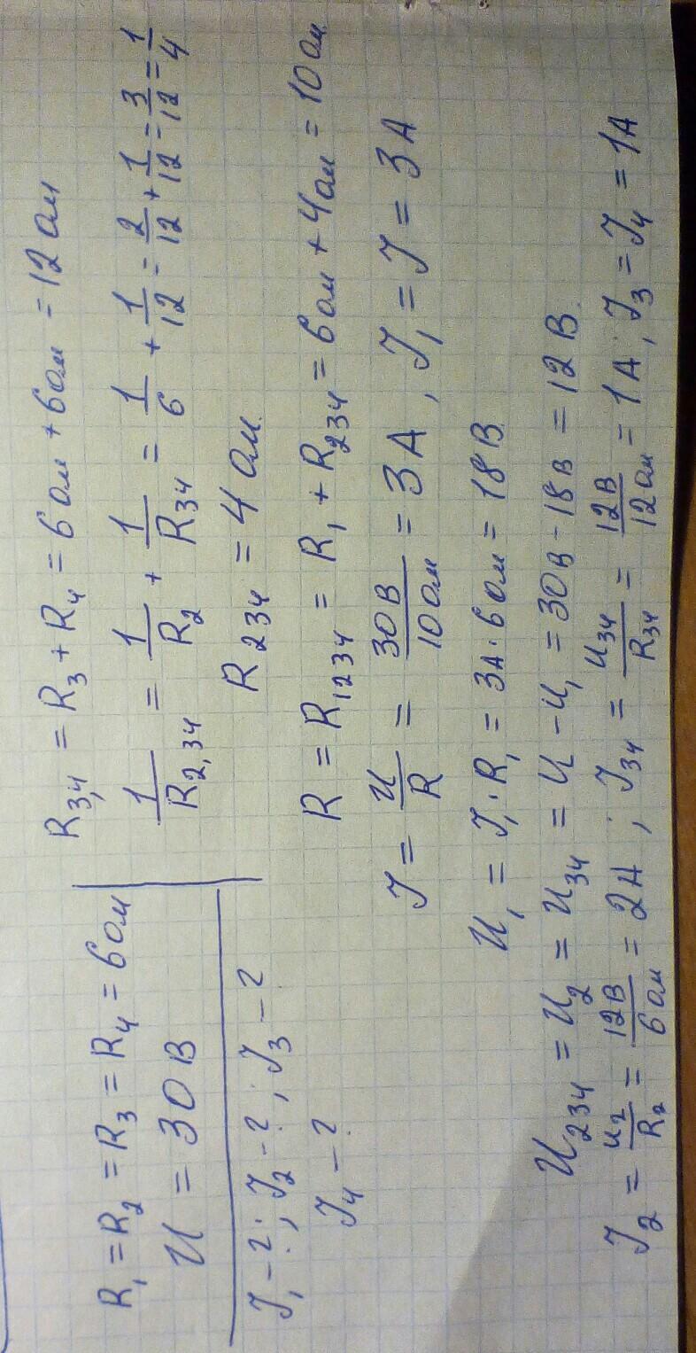 Четыре одинаковые лампы подключены к источнику постоянного напряжения. определите силу тока в каждой лампе если напряжение на источнике составляет 30 в(не обращайте внимания что на картинке резисторы)