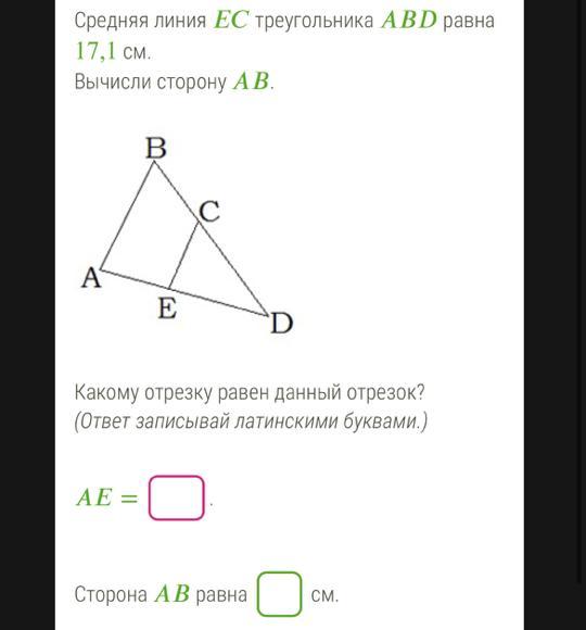 Проходит через середины 2х сторон, параллельна третей и равна её половине.