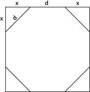 У стекольщика есть квадратное стекло. Сторона квадрата равна 60 см. Нужно вырезать из этого стекла восьмиугольник, у которого все стороны равны и все углы равны. Для этого нужно наметить линии и по этим линиям отрезать от квадрата 4 одинаковых прямоугольных треугольника по углам. Найдите приближенную длину катета треугольника в миллиметрах, считая что корень из 2 равен 1,41
