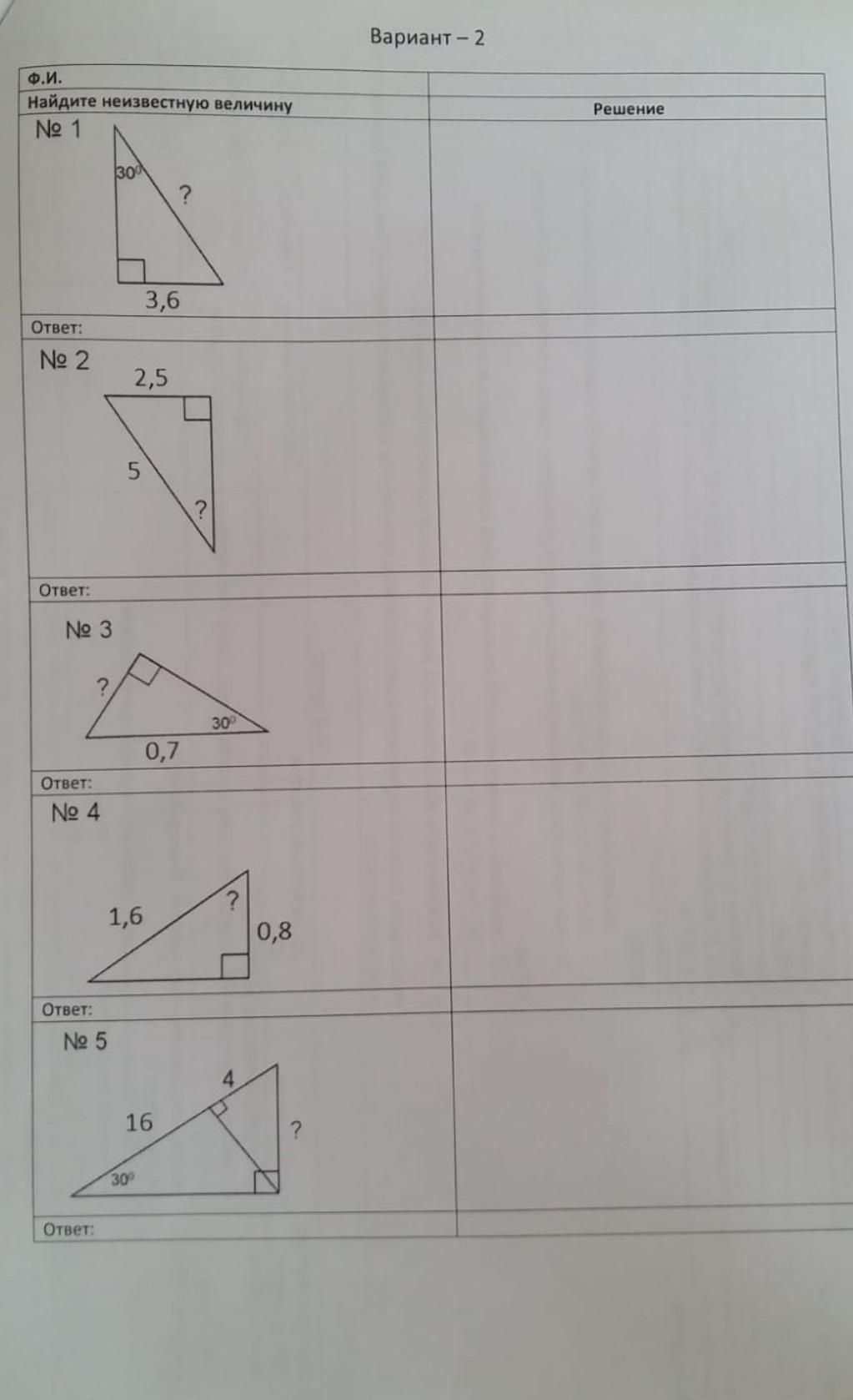 2) Т.к. катет лежит против угла 30°, то он будет равен: