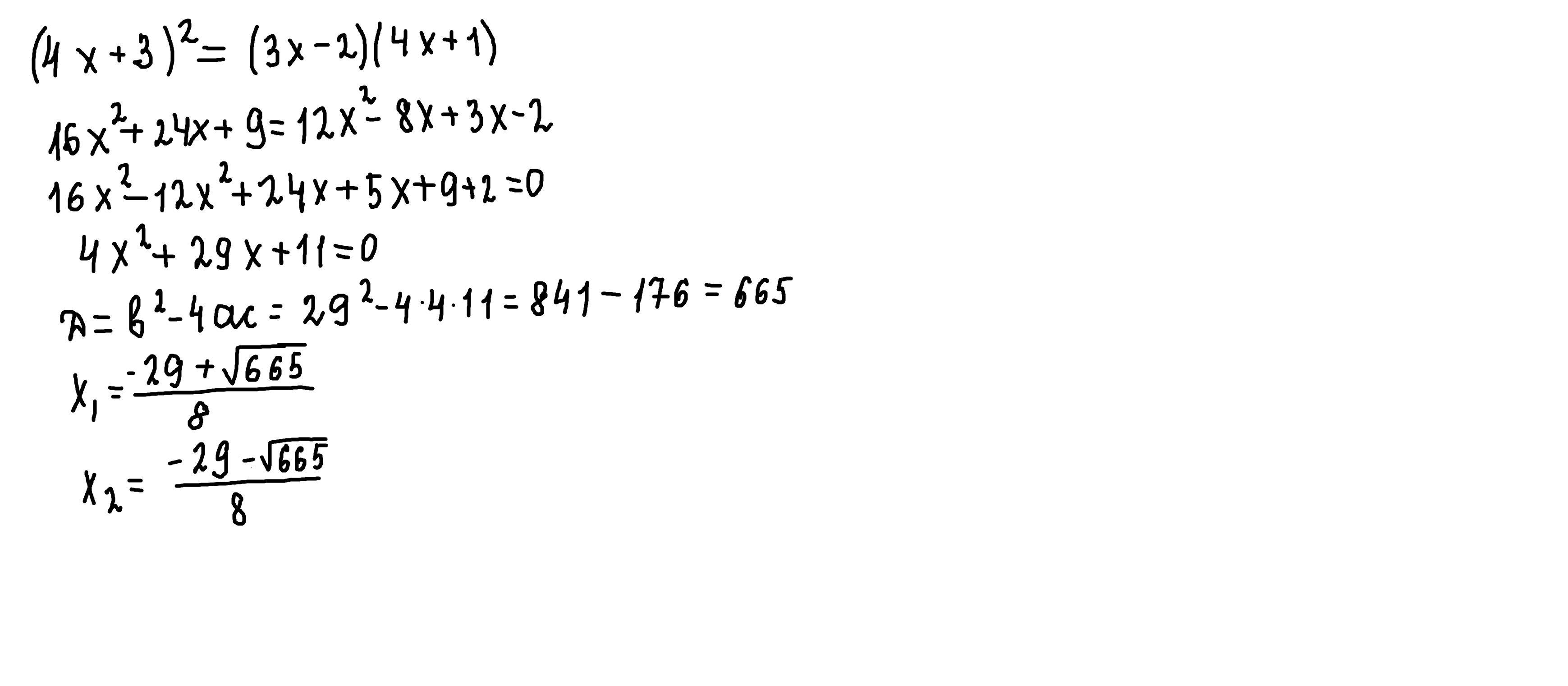 x2=-b-кореньD/2a=-29-корень665/2×4=-29-корень665/8