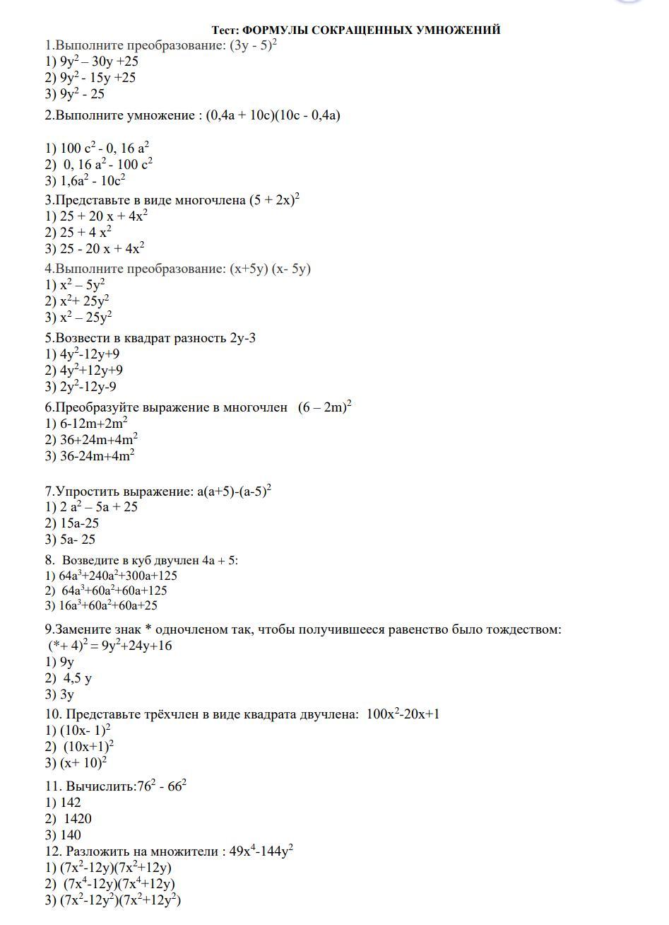 4.Выполните преобразование: (х+5у) (х- 5у)
