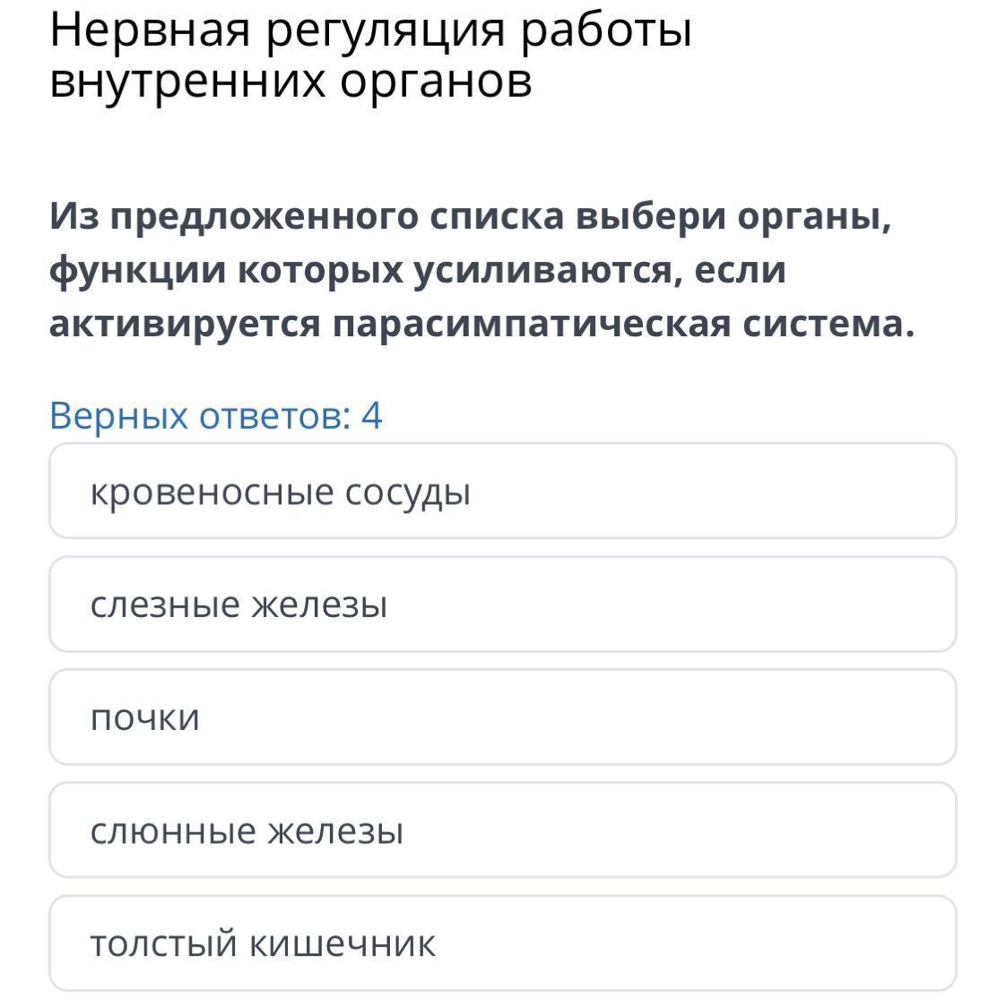 Из предложенного списка выбери органы, функции которых усиливаются, если активируется парасимпатическая система.