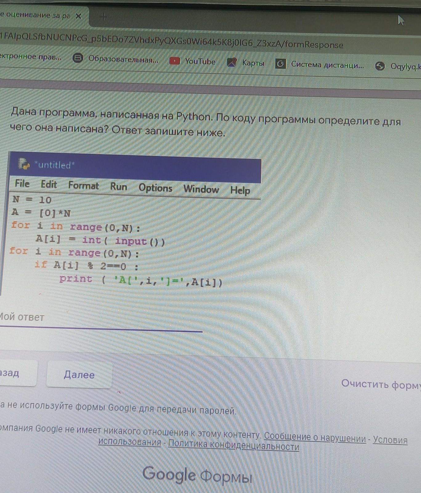 Дана программа, написанная на Python. По коду программы определите для чего она написана? Ответ запишите ниже.