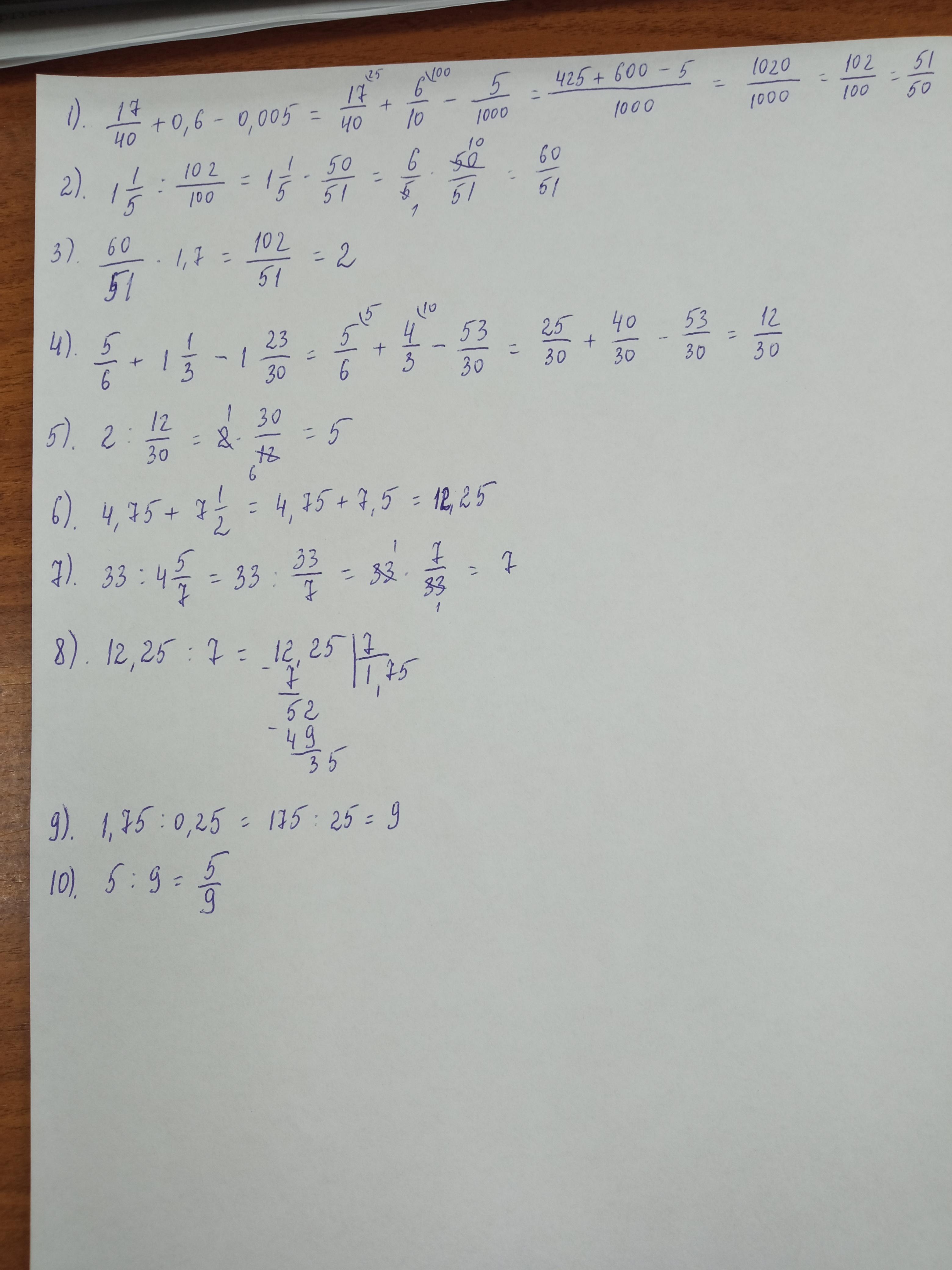 9. Результат второй дроби участвует в делении