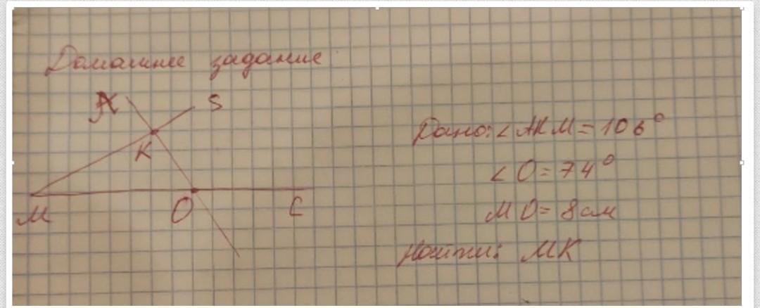 ∠МКО=∠О⇒ Δ МКО- равнобедренный т.к углы при основании равны ⇒ МО=МК=8см