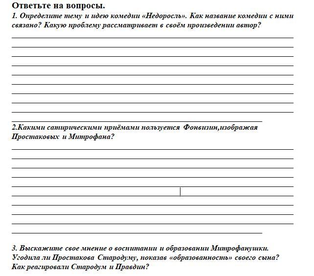1. определите тему и идею комедии «Недоросль». Как название комедии с ними связано? Какую проблему рассматривает в своём произведении автор?