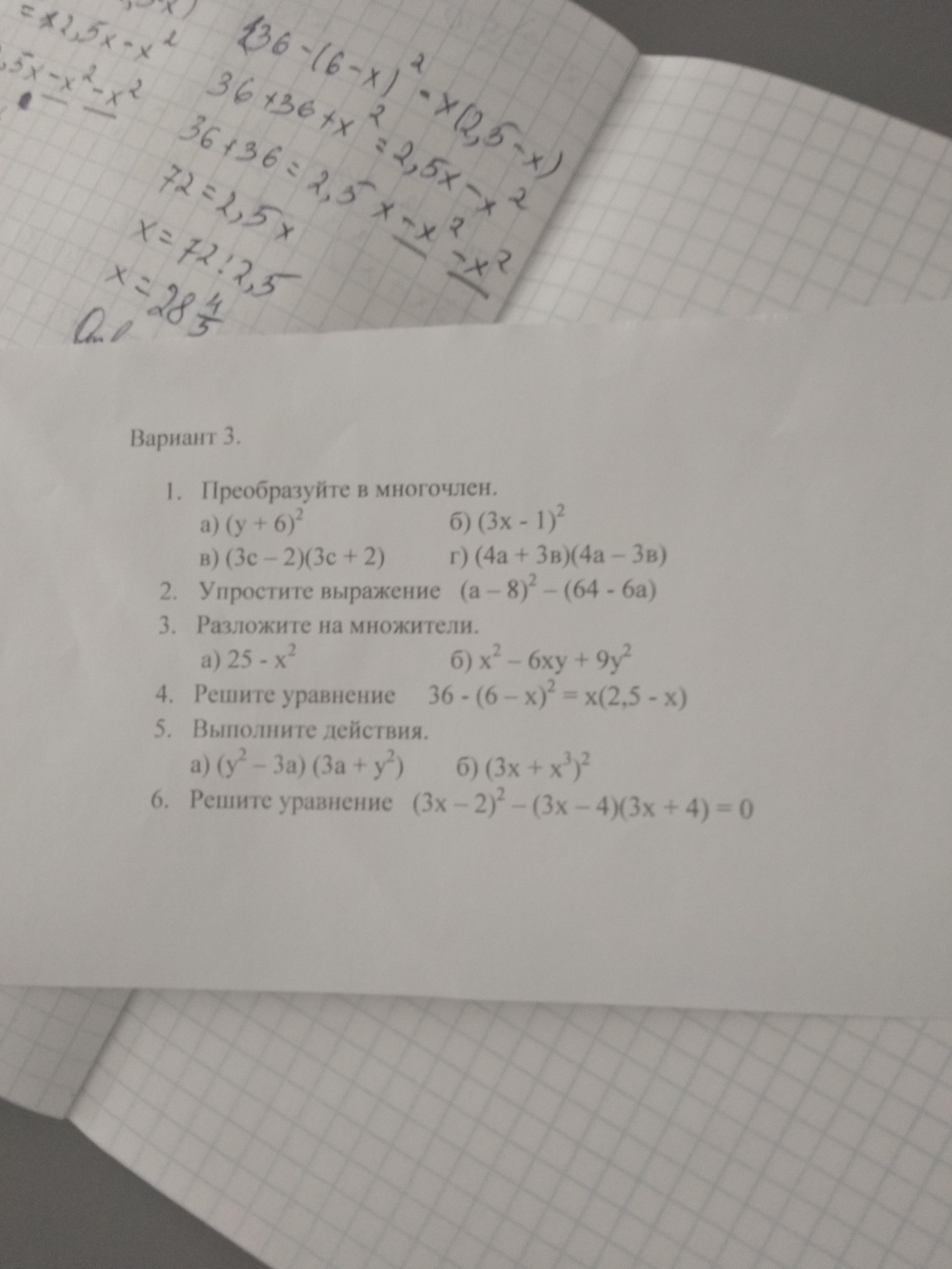 6. (3х - 2)² - (3х - 4)(3х + 4) = 0