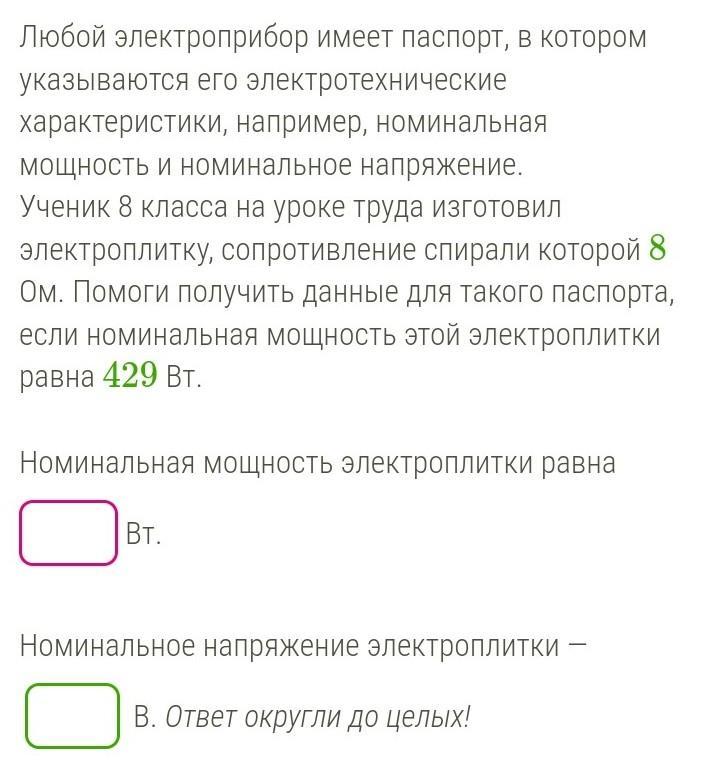 P=U²/R ----> U=√(P*R)=√(429*8)≈59 B