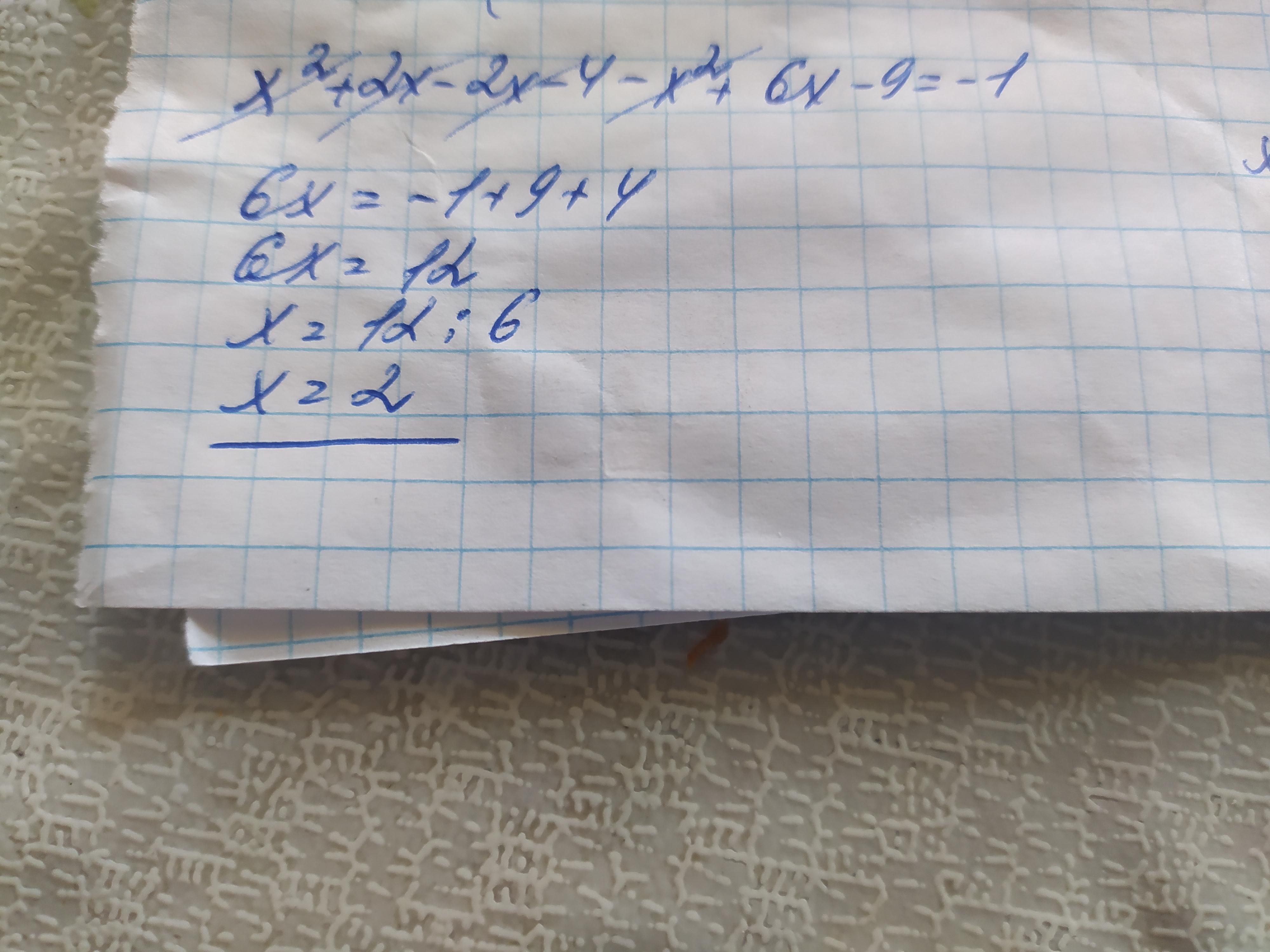 х² - 2х + 2х - 4 - х² + 6х - 9 = -1