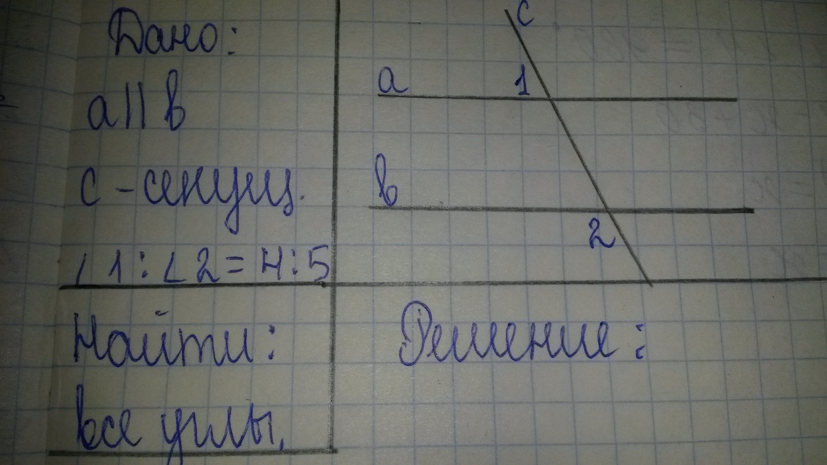 ∠1 : ∠2 = 4 : 5, значит и ∠4 : ∠7 = 4 : 5, а эти углы односторонние, поэтому их сумма равна 180°.
