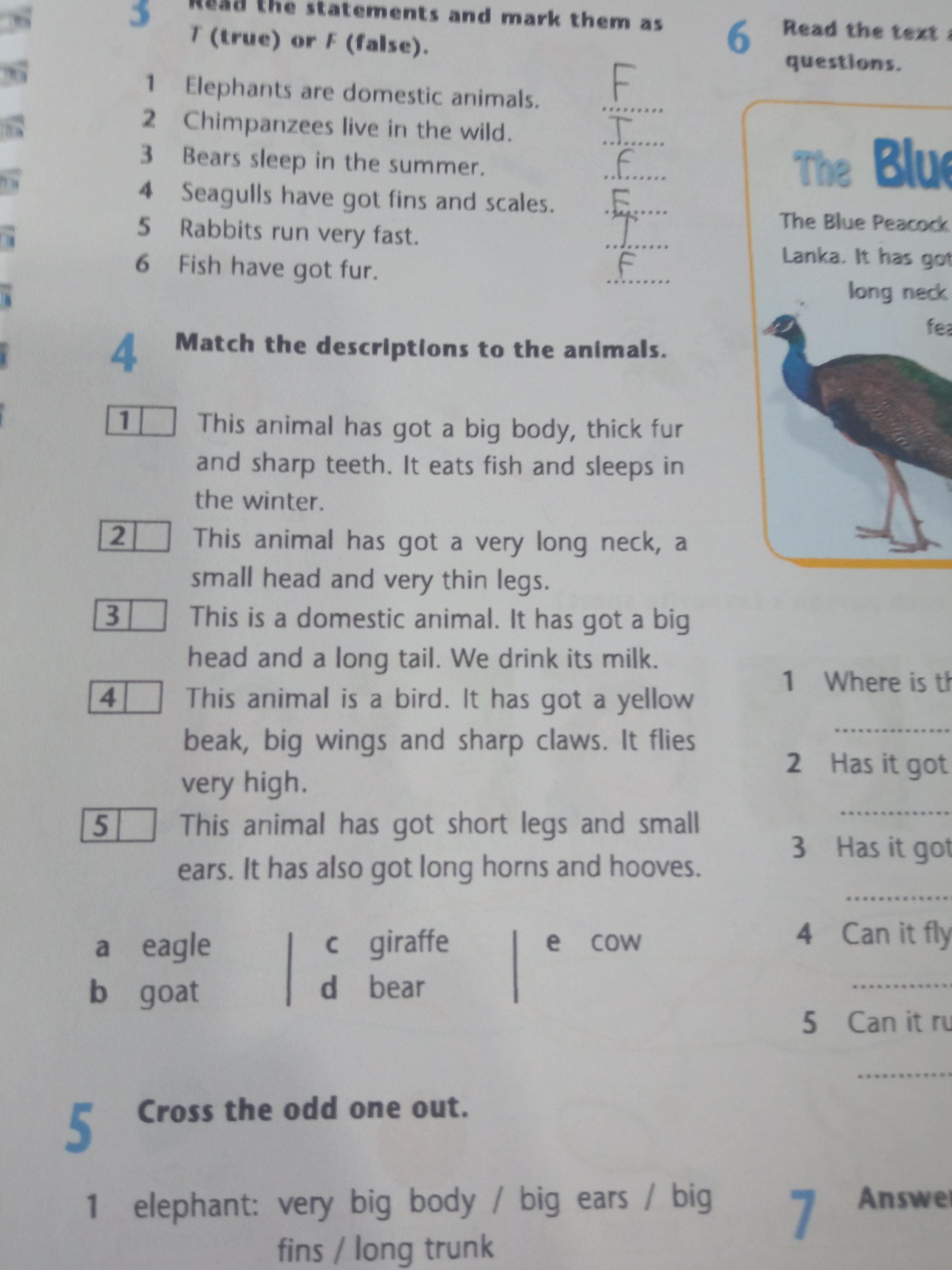 Match the descriptions to the animals This animal has got a big body, thick fur and sharp teeth It eats fish and sleeps in the winter WB p103 ex 4