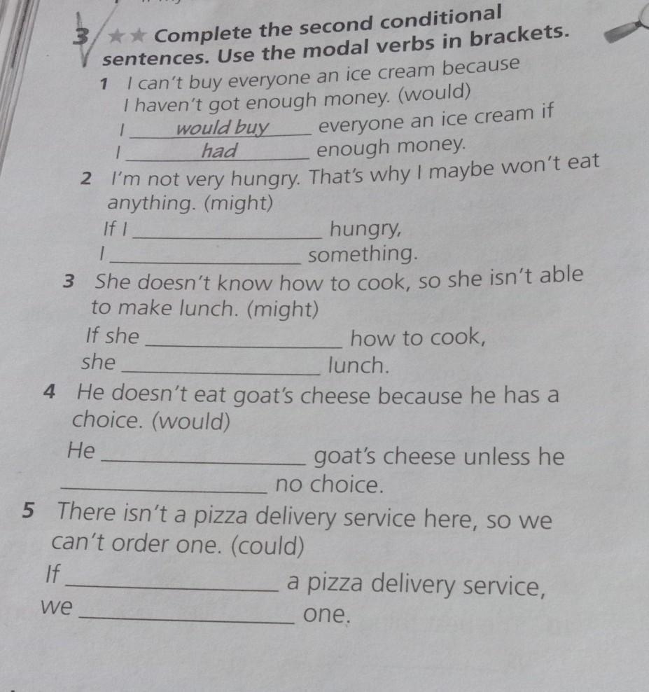 Complete the second conditional sentences .Use the modal verbs in brackets.