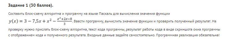 Составить блок-схему алгоритма и программу на языке паскаль, для вычисления значения функции.