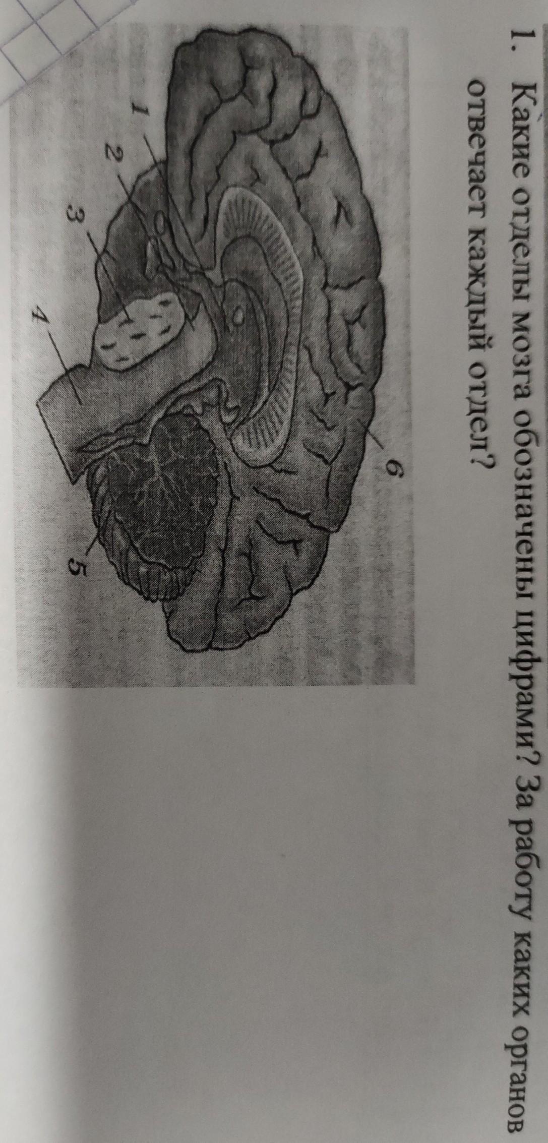 1. Какие отделы мозга обозначены цифрами? За работу каких органов отвечает каждый отдел? 1,2,3,4,5,6?