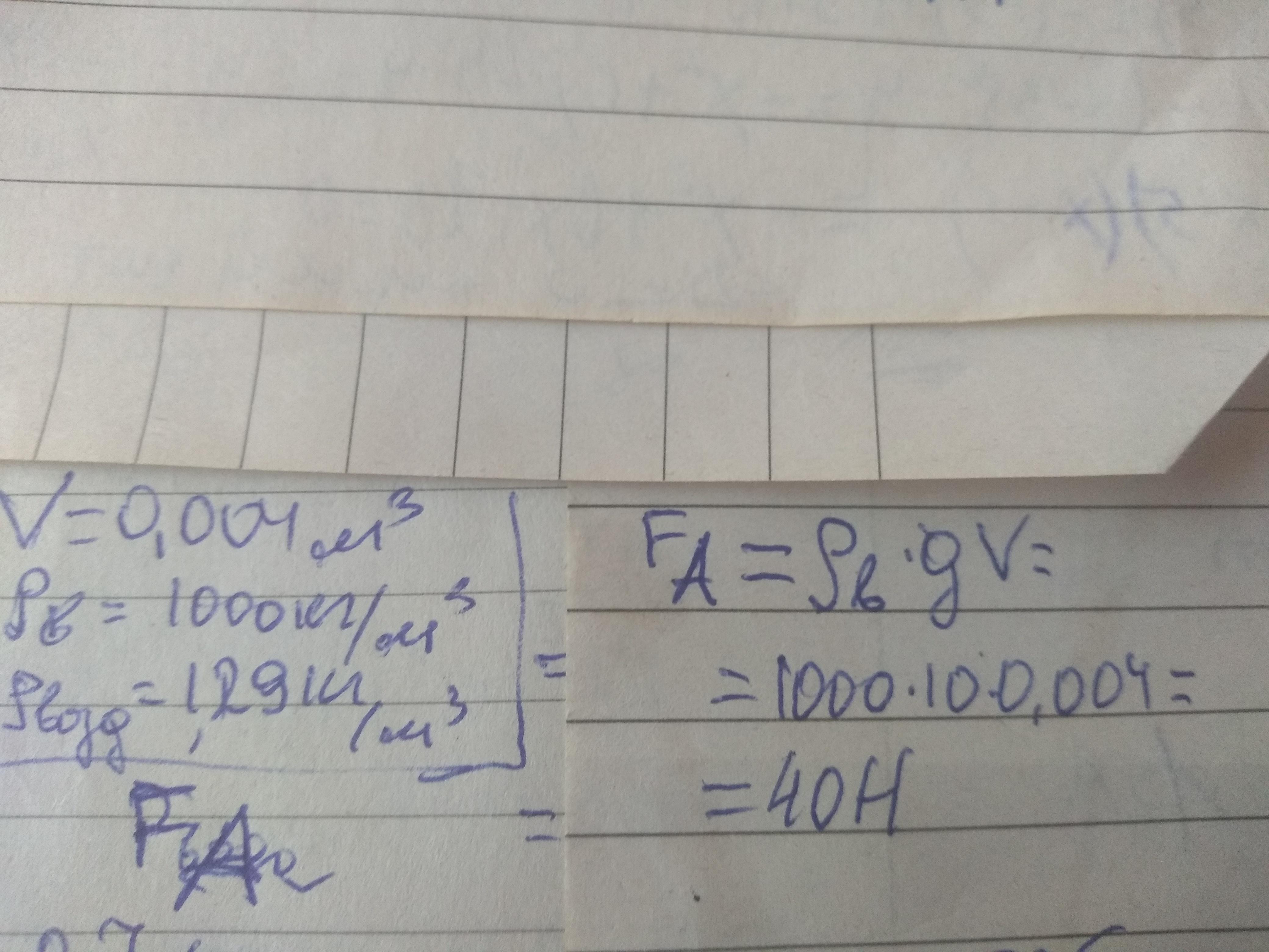 Насколько легче камень размером 0,004 м*3 в воде, чем в воздухе? плотность воды 1000 кг/м*3 и плотность воздуха 1,29 кг/м*3