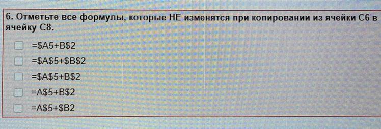 Отметь все формулы которые не изменится при копировании из ячейки c6 ячейка c8?