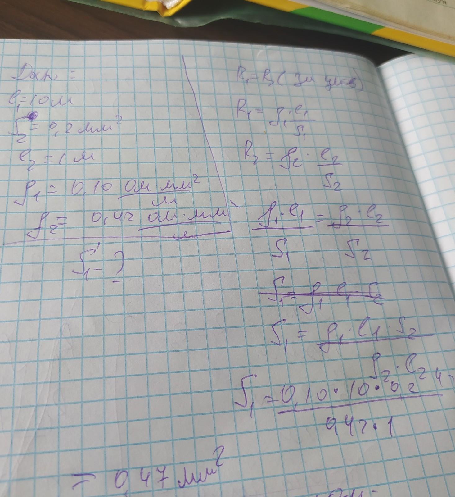 Якої площі поперечного перерізу необхідно взяти залізну дротину довжиною 10 м, щоб її опiр було такий ж, як у нiкелінового дроту площею поперечного перерізу 0,2 мм² і завдовжки 1 м?