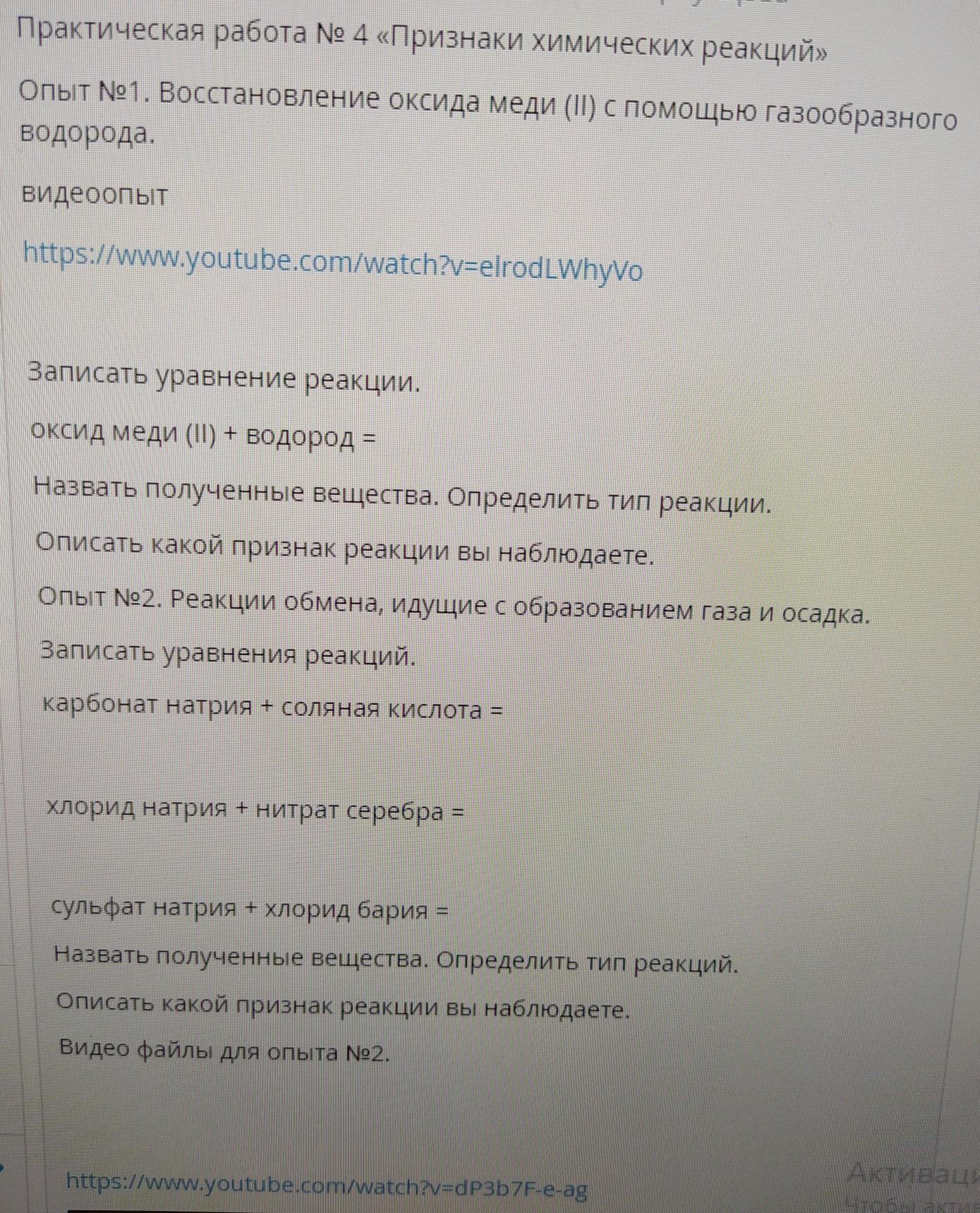 признак реакции: изменение цвета исходного вещества с образованием нового вещества