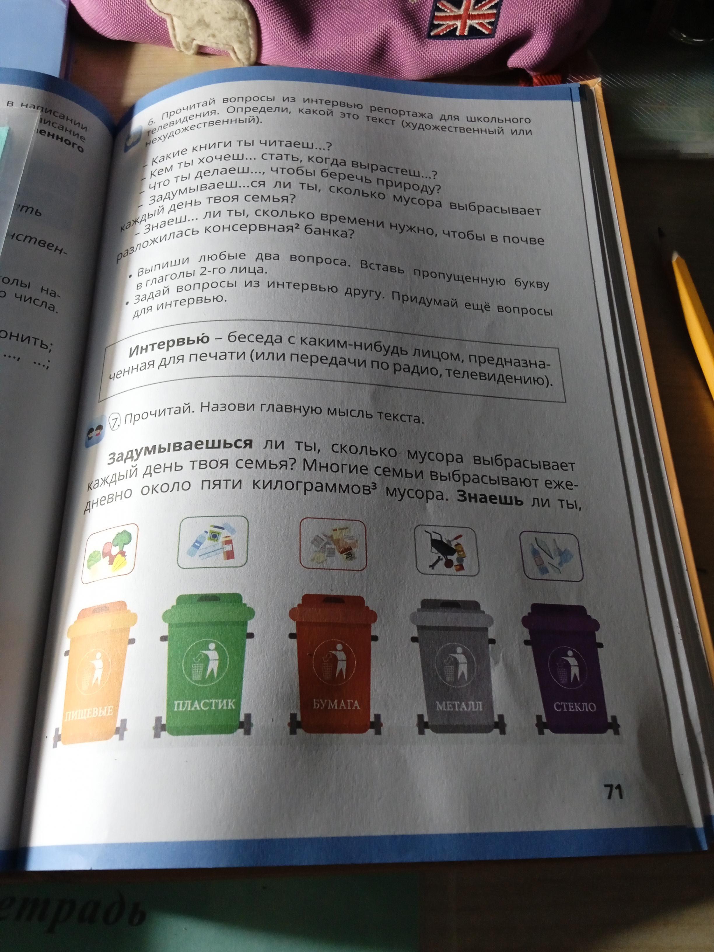 7.Прочитай.Назови главную мысль текста. Выпиши выделенные глаголы. Определи их время ,и лицо и число. Выдели личные окончание.Помогите пожалуйста 4 класс 2 часть учебника стр 71-72.