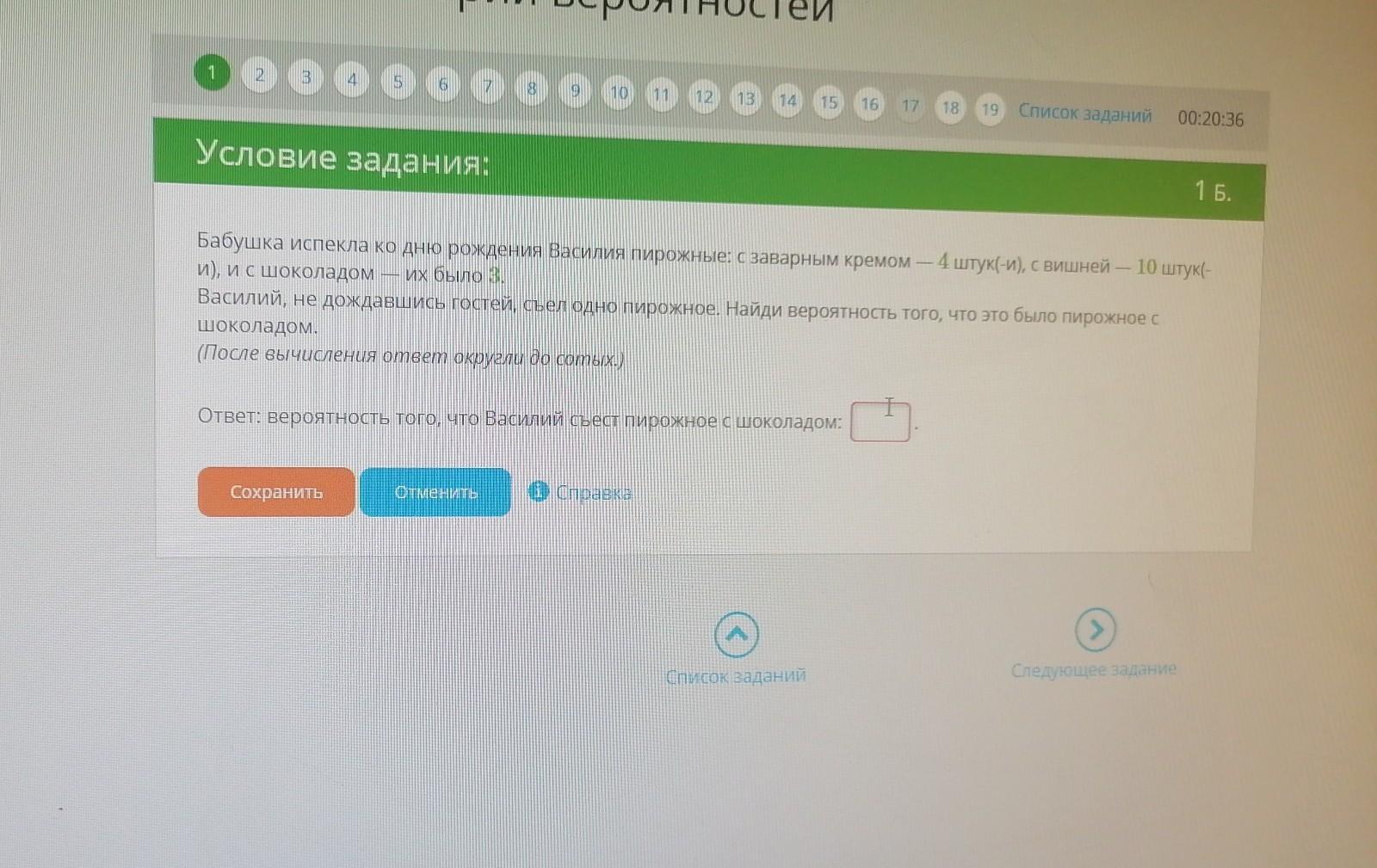 Ответ: вероятность того, что Василий съест пирожное с шоколадом: 0,18