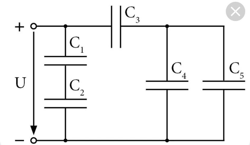 Вычислите общую емкость всей батарей конденсаторов, если ёмкость на каждом конденсаторе равен С