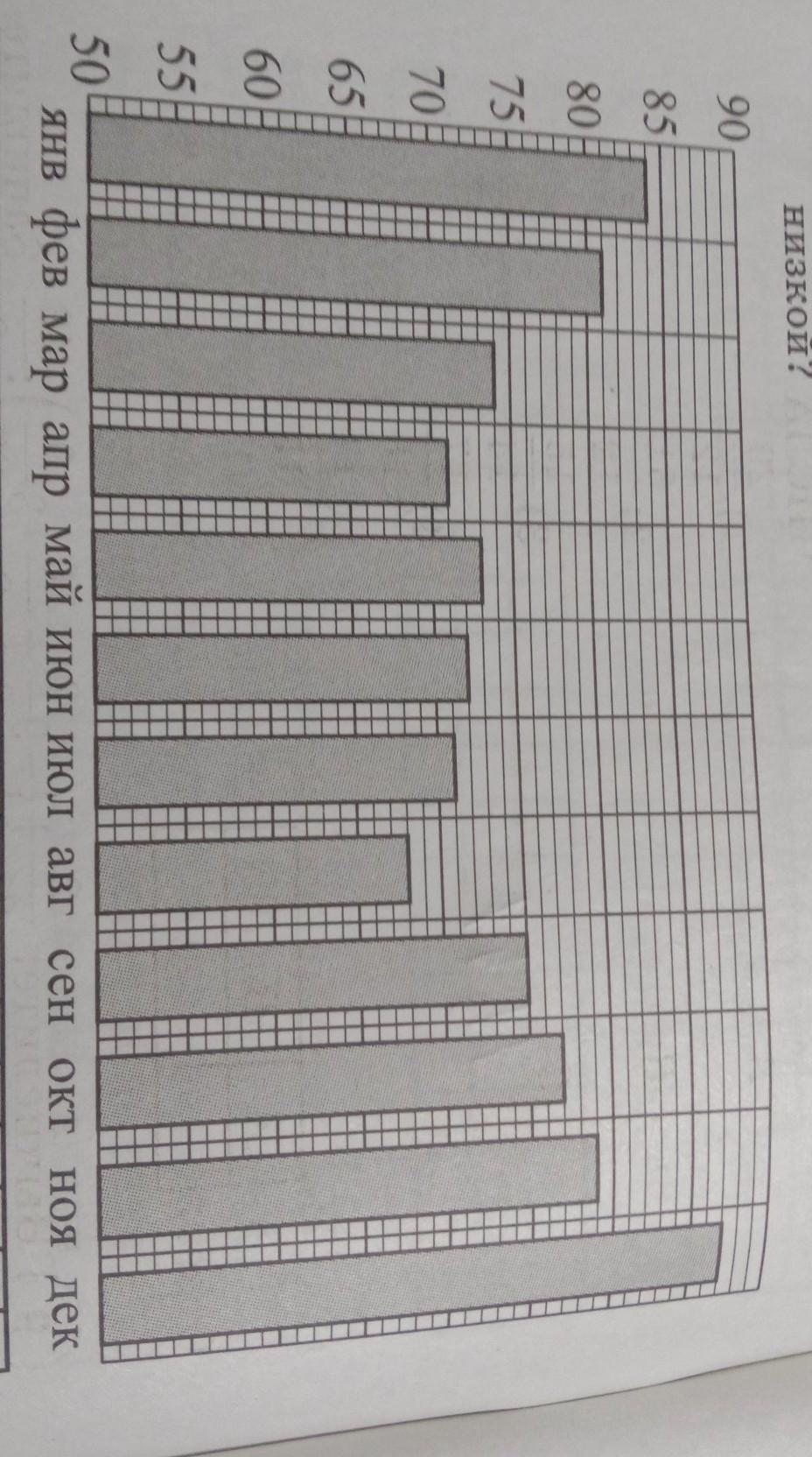 на диаграмме показана средняя влажность воздуха в костроме в каждом месяце по вертикали указана влажность воздуха в процентах, по горизонтали месяцы. в каком месяце первого полугодия влажность воздуха была самой низкой