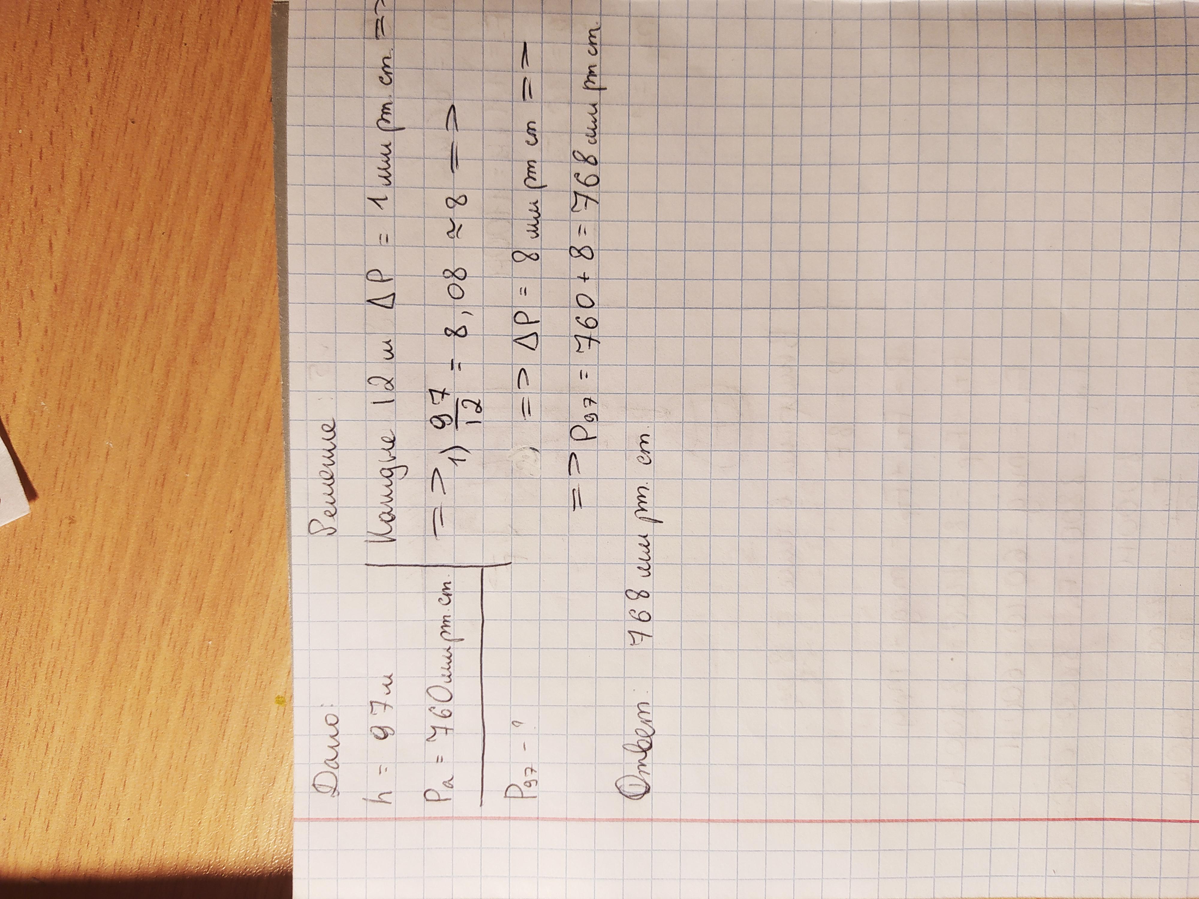 СРОЧНО!!! ДАЮ 75 БАЛЛОВ, Высчитайте атмосферное давление в с. Прудовое, если известно, что абсолютная высота села над уровнем моря 97 м, а атмосферное давление на высоте 0м составляет 760 мм. рт. ст.