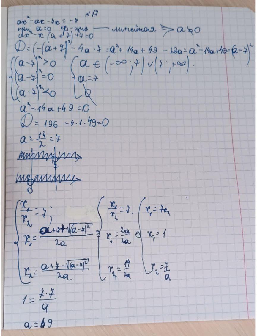 При каком значении параметра а отношений корней уравнения ax2−ax−7x = −7 равно 7? через дискриминант пжлст. В ОТВЕТЕ ДОЛЖНА БЫТЬ ЕЩЁ ЕДИНИЦА