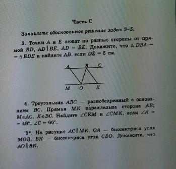 4. Треугольник АВС - равнобедренный с овнованием Вс. Прямая МК параллельна стороне АВ; точка М принадлежит прямой АС, точка К принадлежит прямой ВС. Найдите углы СКМ и СМК, если угол А=48 градусов, угол С=66 градусов
