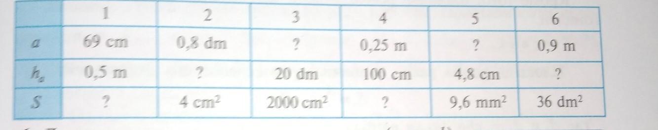 ПОМОГИТЕ ПОЖАЛУЙСТА 5. а- основание треугольника, h — высота, опущенная на основа- ние, s- площадь треугольника. Найдите неизвестные величины.