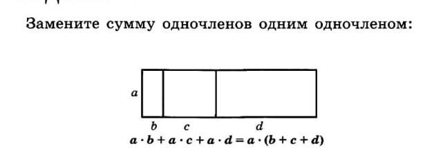 пусть b+c+d=к ,тогда площадь полученного прямоугольника можно выразить одним одночленом, т.е. а*к.