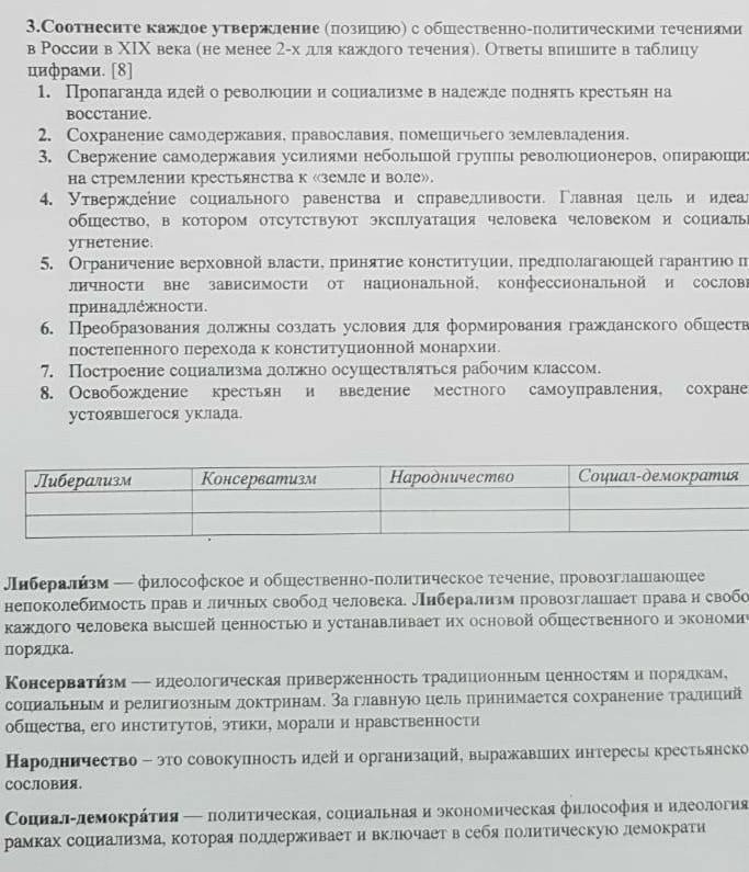 3.Соотнесите каждое утверждение (позицию) с общественно-политическими течениями