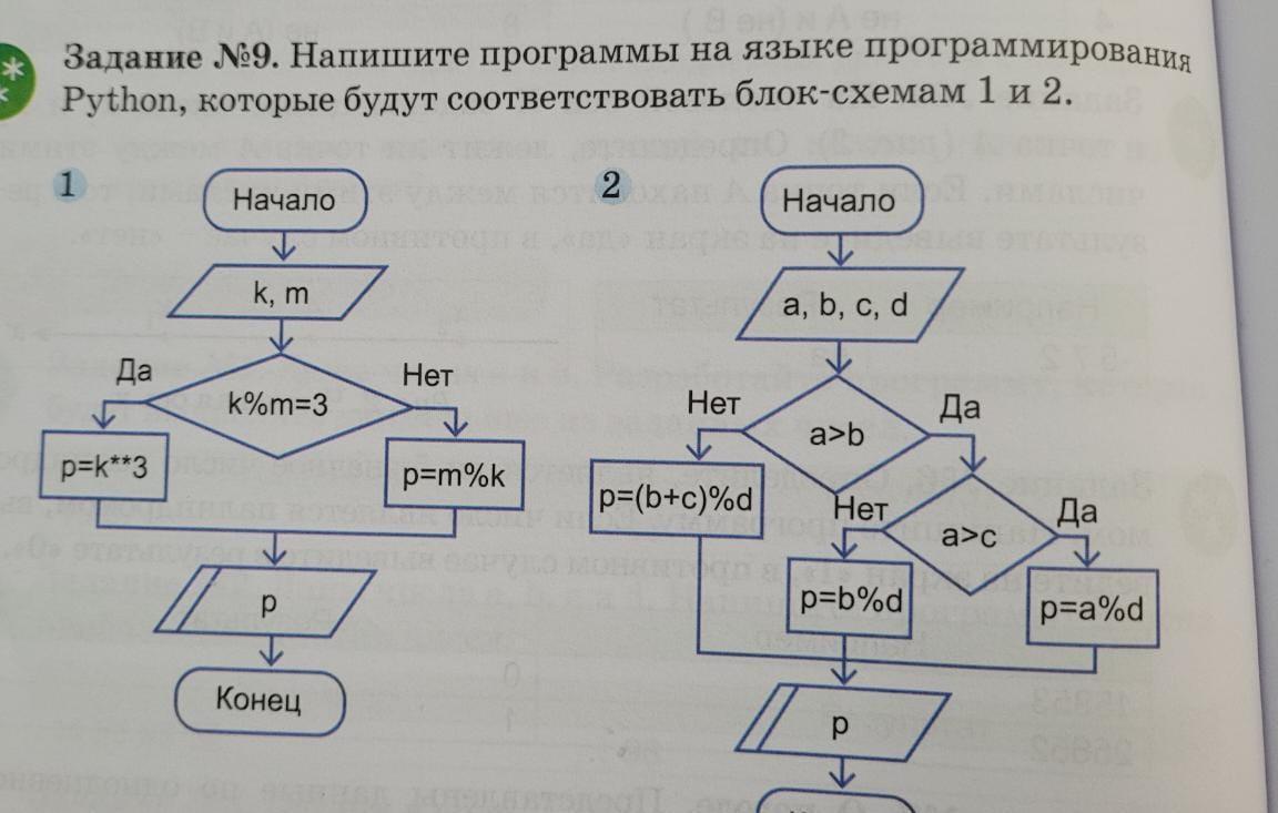 Напишите программы на языке программирования Python которые будут соответствовать блок-схемам 1 и 2