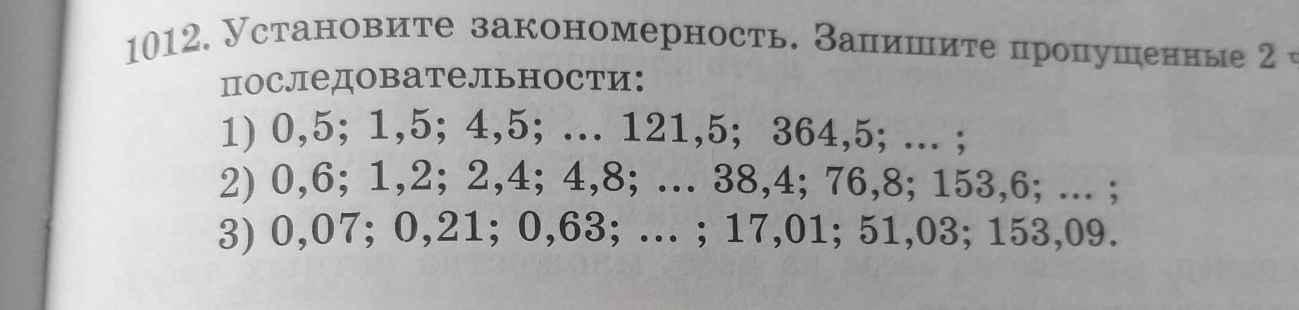 установите закономерность.Запишите пропущеннные 2 члена последовательности 0,5 1,5 4,5..... 121,5 364,5 ......