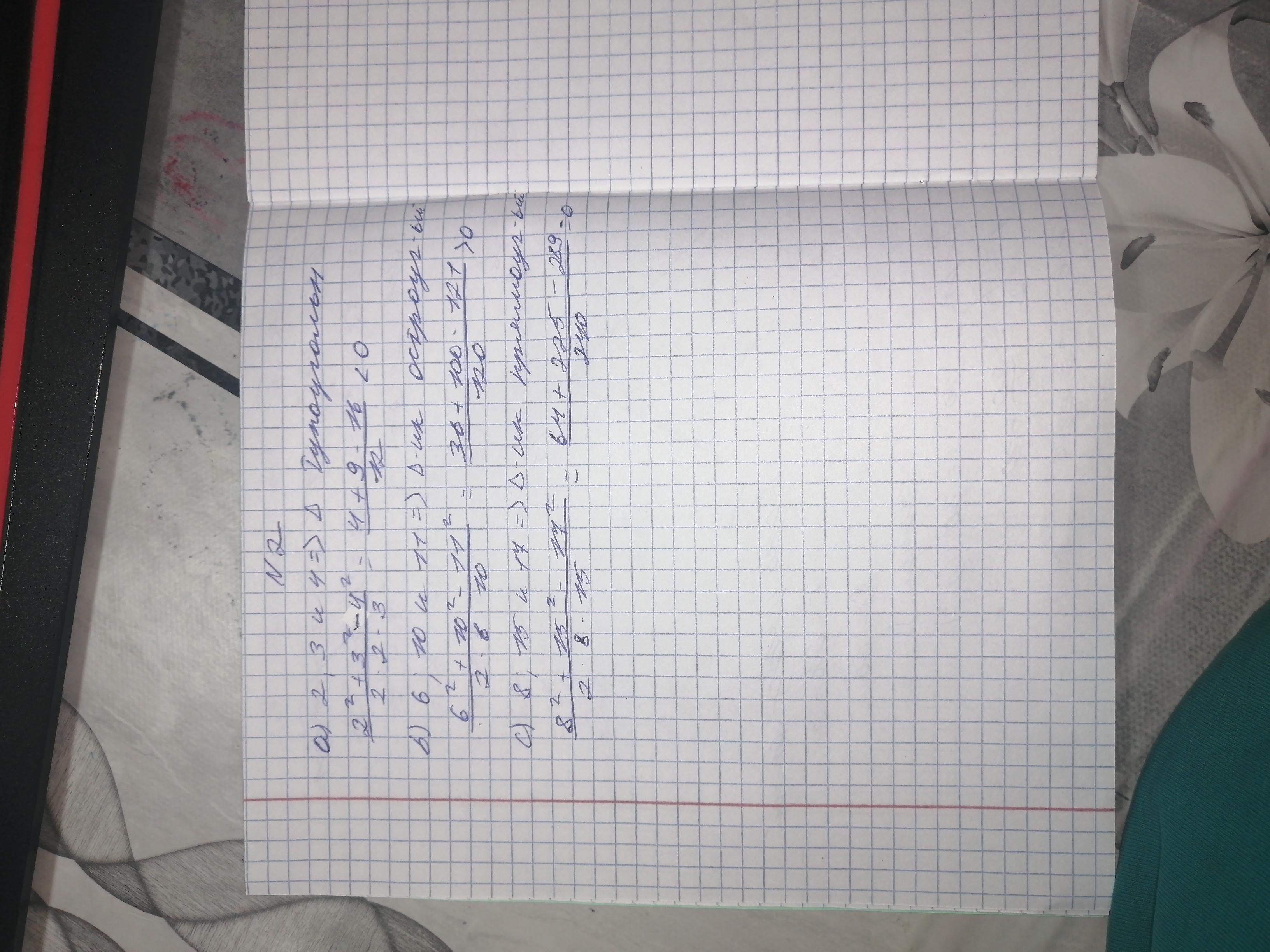 2.Не вычисляя углов треугольника, определите его вид (по величине Углов), если стороны треугольника равны: а) 2, 3 и 4; b) 6, 10 и 11; c) 8, 15 и 17. 17
