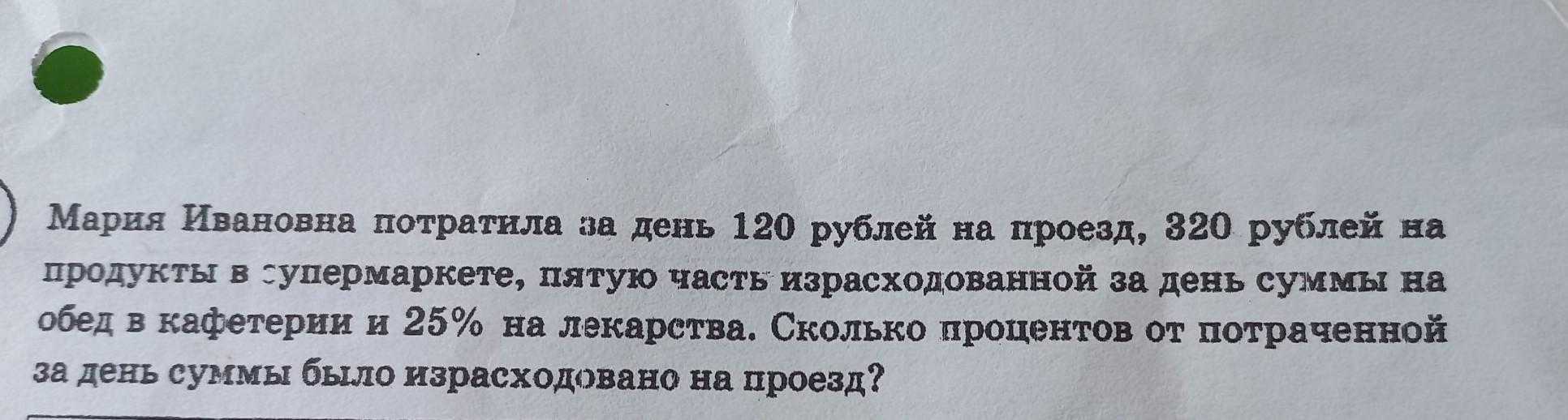 Ответ: 15% от потраченной суммы было израсходовано на проезд.