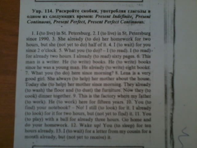 lived/have been living 3 has already been doing 4 have been waiting 5 are you doing, am reading,