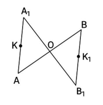 б) точки K и K1 – середины отрезков A1А и B1B соответственно лежат на одной прямой, проходящей через точку О (15 баллов).