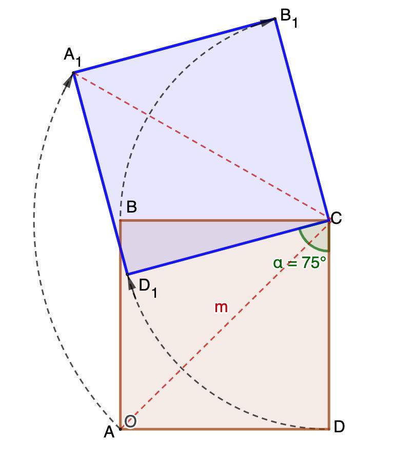 Будем поворачивать квадрат вокруг вершины С против часовой стрелки на угол 75°.