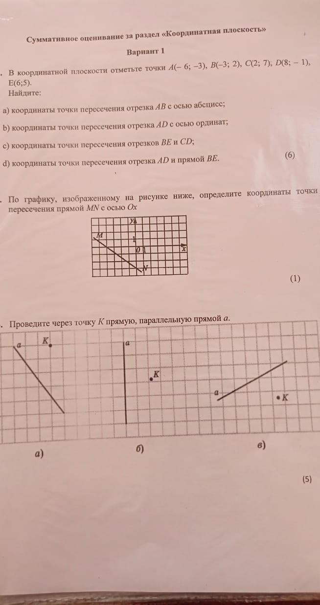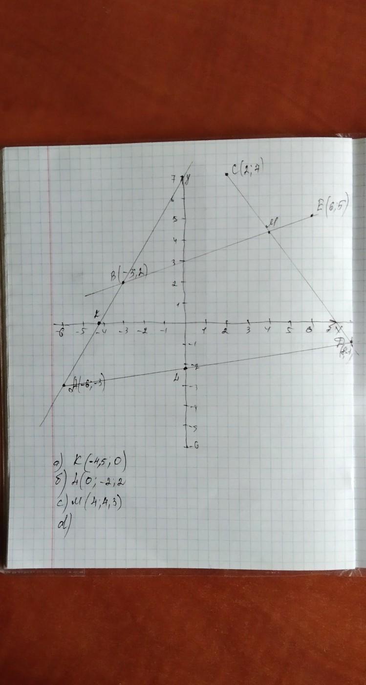 в координатной плоскости отметьте точки А (-6-3) , В (-3;2) С (2;7) D (8;-1) E (6;5)