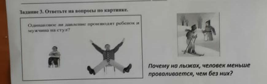 Потому что у подошвы обуви почти в 20 раз меньше площадь, чем у лыж. А мы знаем, что чем больше площадь, тем меньше давление⇒У лыж меньше давление и они непроваливаются в снег.