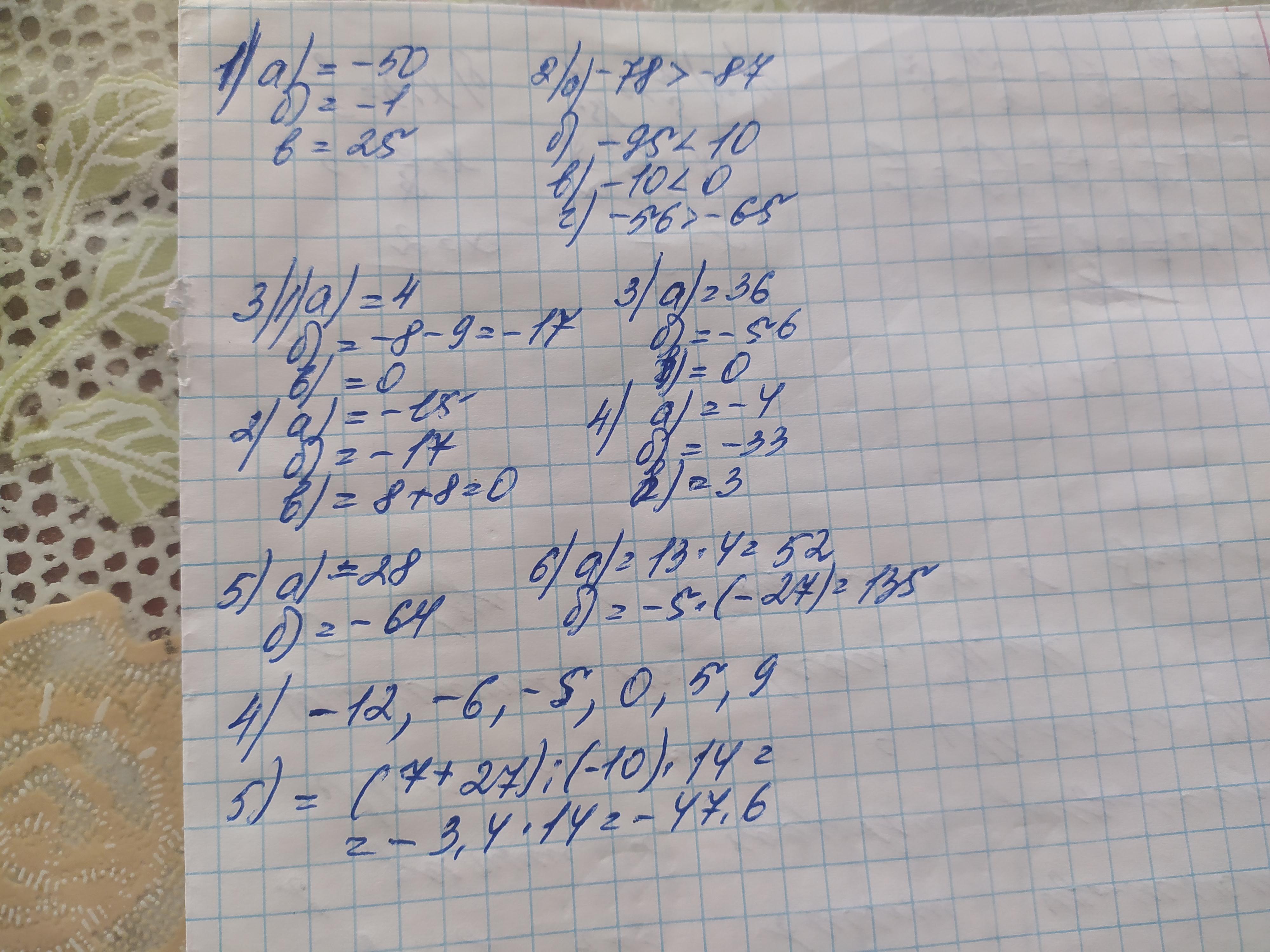 4. а)–24:6; б)33:(–1); в)–18:(–6) 5. а)7–10+31; б)(–4)³