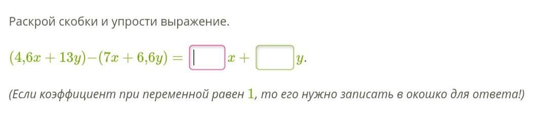 (4,6х+13у)-(7х+6,6у)=4,6х+13у-7х-6,6у=
