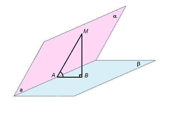 Двугранный угол образован плоскостями α и β. Прямая а - линия пересечения плоскостей.
